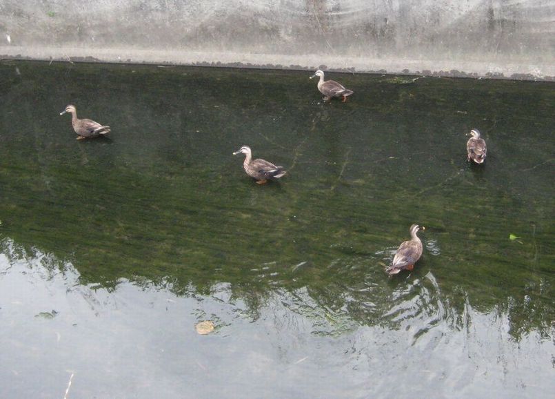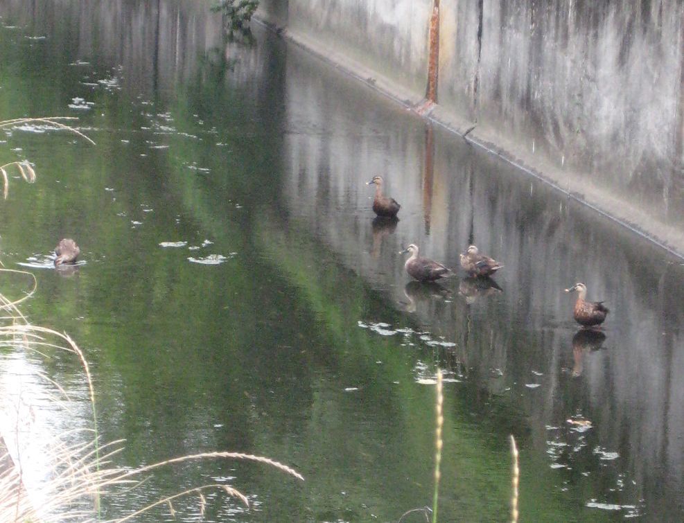 こちらは復路の別の水路。子離れした親ガモたちが、解放感に浸りながら朝のひと時を優雅に楽しんでいるように見える。私の勝手な思い込みではあるが、自然の営みに心を反映させるのが歌詠みや詩人の習い性だ。