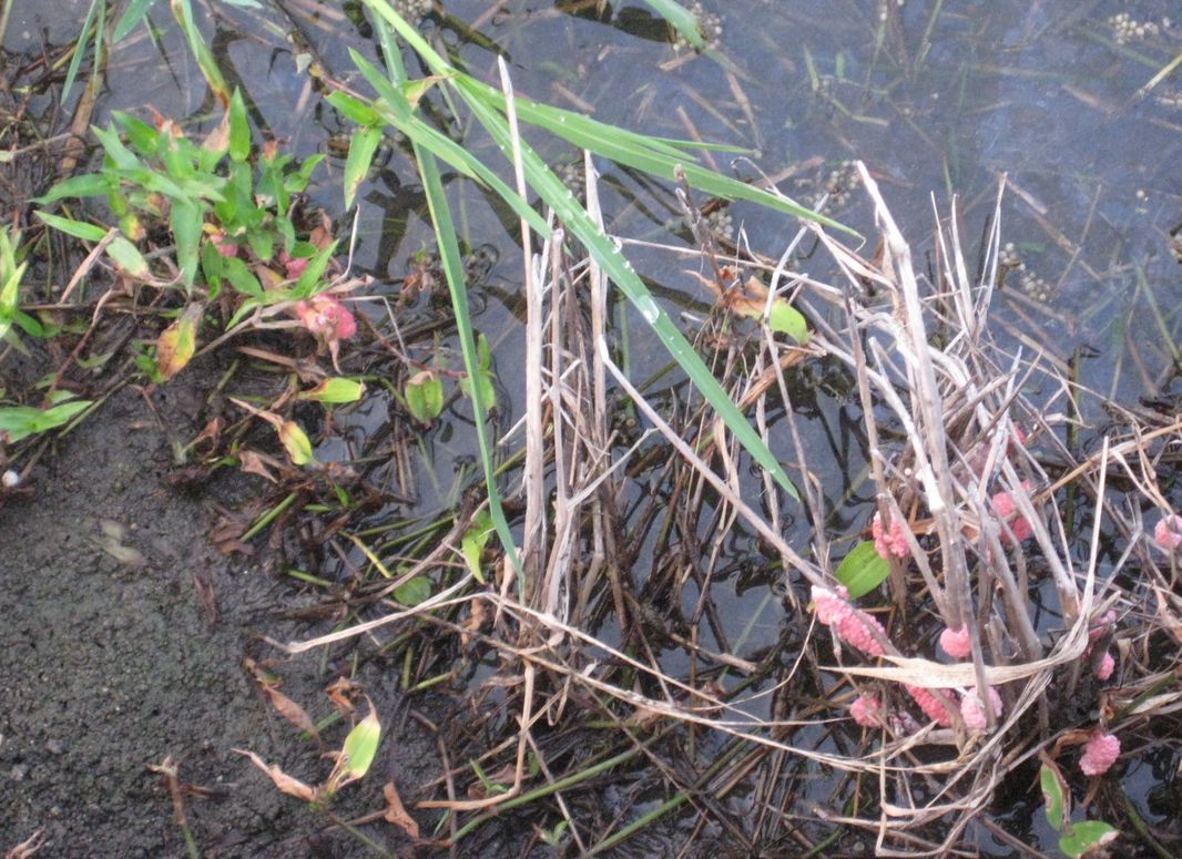 余り手入れの良くない田んぼには、毒々しい色をしたジャンボタニシの卵が産み付けられている。