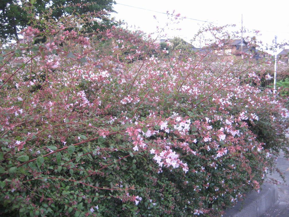 アベリアの花が今を盛りに咲いていて、歩く人をにぎやかに迎えてくれる。