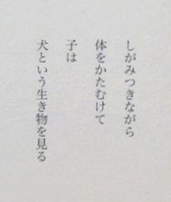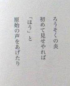 簡単に作っていそうでいながら、イメージと響きと音数のバランスを絶妙に計算してある。その独特の「句またがり」の使い方や字余りなど、意識、無意識を超越したところでピピピピと言葉が生まれていくのだろう。口語だけで会話そのものを取り込んだ文体には愛唱性と共に簡単に暗誦できる特徴まで備えている。