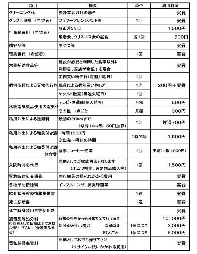 < 介護保険外サービス利用料金表 > ○ 随時かかる費用
