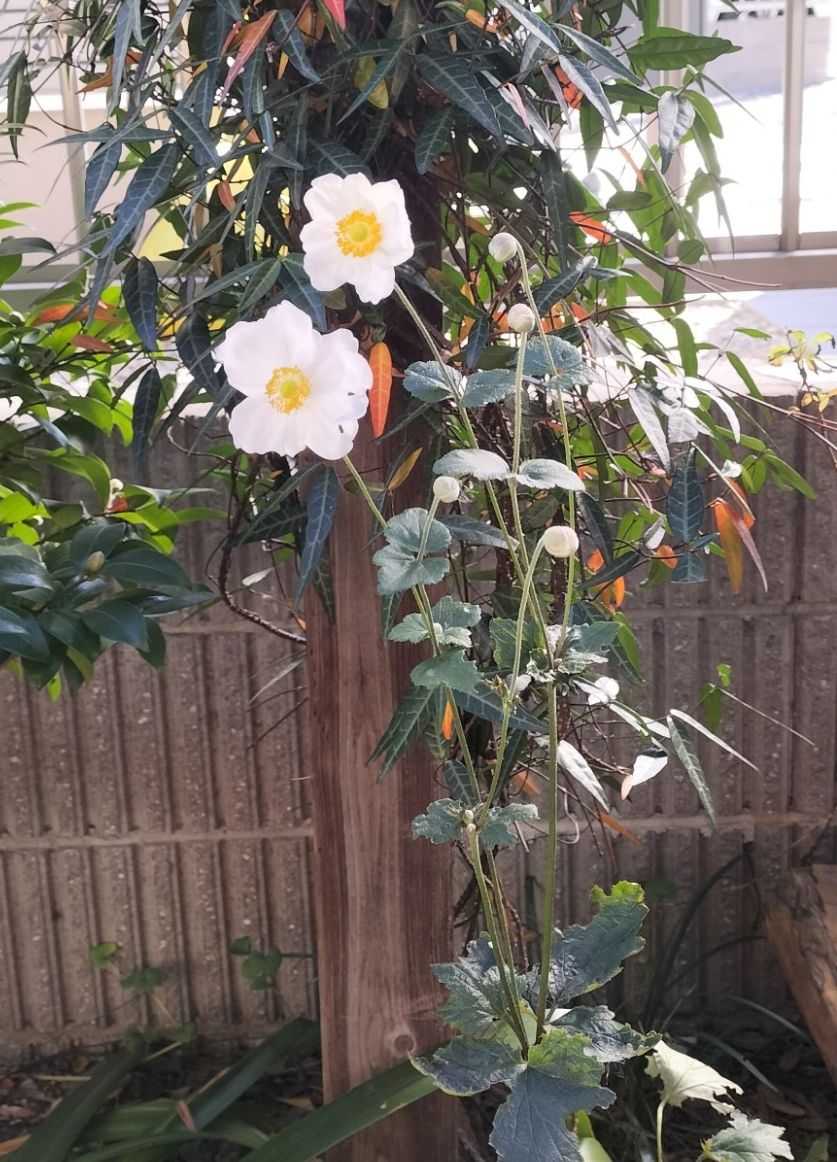 大好きな秋明菊。耐寒性が強く耐暑性もあり、どちらかというと夏は冷涼な地域のほうが成長が活発で、株もよくふえる。根は高温や乾燥に弱いので、地温の上昇を防ぐとともに、株元には直射日光が当たらないようにすることが大切らしい。日なたから明るい日陰まで、幅広く適応する。
