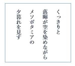 ♪ くっきりと落暉が空を染めながらメソポタミアの夕暮れを見す