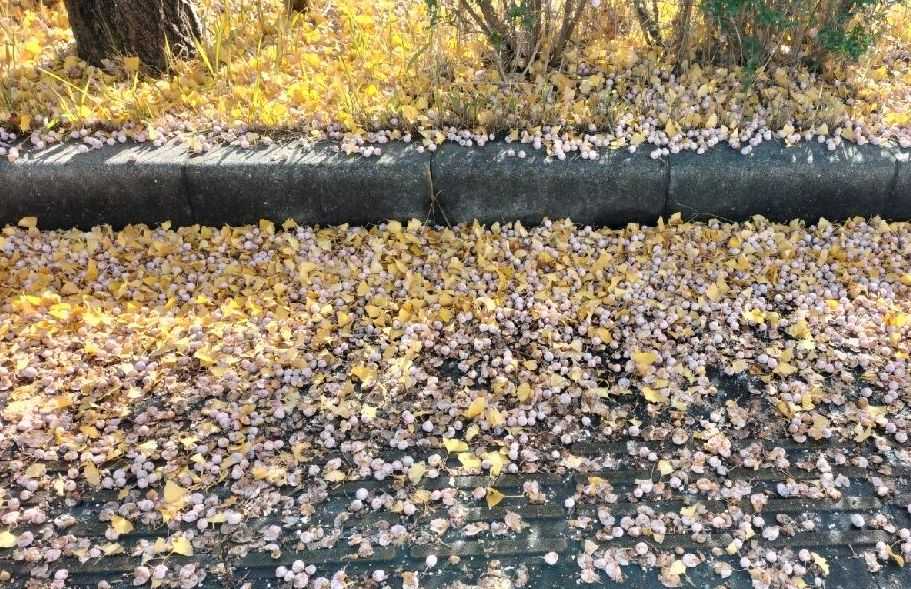「銀杏は自由にお持ち帰りください」の看板があるが・・。