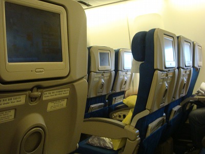 「ラスベガス旅行記2010.07」の続きです。☆★☆2010/07/16 (FRI) 5日目☆★☆23:30頃、ソウルに向けて離陸。長時間フライトの始まりです。 離陸してしばらくして眠ろうかと目を閉じていたところ、機体が揺れているワケでもないのに頭がぐわんぐわん回っているような感覚になり、具合が悪くなってきました><乗り物酔いはしやすいタイプですが、飛行機で酔ったことは1度もなかったので、疲れがピークに達していたのでしょう。もしものときのために持参していた酔い止めをソッコー飲んだら、この具合悪さも解消され、一気に眠気が襲ってきました。飛行機で眠っていた時間が今までで一番長かったかも。いつも全然眠れないので。そんな中でも機内食はきっちりチェックしております!夕食はこちら☆大韓航空名物のビビンバは往路で食べたので、復路はビーフを選択しました。 でも、イマイチだったんですよね^^;復路もビビンバで良かったかも。朝食は、こちら☆お粥かオムレツを選べましたが、私はオムレツにしました。 ギュウギュウに詰め込まれたメロンが朝食にはぴったり。とくにハズレはなかったですね~。☆★☆2010/07/18(SUN)7日目☆★☆4:15頃、ソウルに到着。約5時間のトランジットが待っています。まだまだ日本には帰れません(笑)次回は、ソウル→成田 大韓航空編でーす☆ 応援(1クリック)お願いします♪