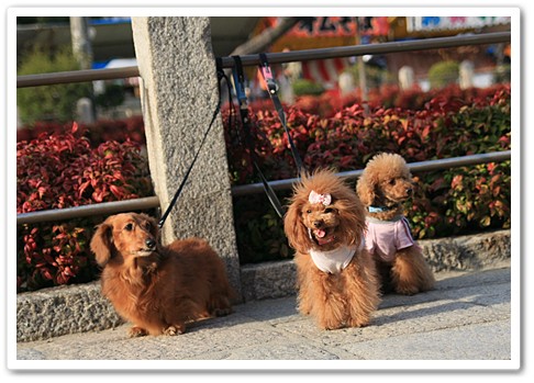 お彼岸のお参りに 四天王寺さんへ (3/18)妹んちのレオくんも一緒です ♪犬種は 違うけど、同じレッド軍団やね^^亀さんたちも 春の陽気にさそわれて ひなたぼっこ。昔はもっと 島が隠れるくらいのたくさんの亀が、いたんだよ。子供のころ、 興味深く見ていたのを 思い出します。父と母について、お参りに来ていた あの頃。。今は、 父も母も ご先祖様に仲間入り。そして、妹と一緒に お彼岸参りです。変わらぬ場所があって、移り変わっていく時間を感じ・・そして、 ずっと繋がっていく魂。そんな想いに包まれます。さぁ、レオくん、晴ちん、ひなたん。亀さんと、お写真 撮りましょ。四天王寺さんでお参りした後は、一心寺さんへ向かいます。お骨佛さま(遺骨で造られる阿弥陀如来像。母の骨も入ってます。)を、拝んでいると 母がすぐそこにいるように感じます。「みんな元気です^^ いつも見守ってくれてありがとう。」 ワンコと一緒だと、いろんな方が声をかけてくれます。「この子ら、親子やな」 (いえ・・それぞれ別の親から生まれました。。)「ちゃう、ちゃう、違う犬(犬種)や」 (ヘアースタイルは違うけど、同じトイプードルです。。)私が説明に入り込む隙もなく・・(笑)「この子、肥えすぎやで」 (レオくん、確かに肥えてます。ハッキリ言わはるな~ ^^;)「ごはん減らして、痩せな アカン!」 (そうそう、健康にためにダイエットね!)舌に衣を着せぬ物言いが、なんとも元気でオモシロイ(≧m≦)ぷっ!ワンコ好きの大阪のオバチャンさんたち。去り行くおばちゃんの背中を見送りながら妹と大笑い!いくつになっても 元気が一番! ね^^お参りが終わったら、公園へ 寄って帰ろうか。秋のお彼岸の帰りには、真っ暗な公園で 走ったレオくん♪「レオくんも 走るんや~」※レオくんは、人も犬も大の苦手。。 おかげでお散歩もあまり好きではありません。そんなレオくん・・それまで、走ることありませんでした。その後、あの公園に行っても、「走らなかった」と、妹ちゃん曰く・・・さぁ・・今日は、どうでしょう。。。??レオくんが、走ったぁぁ~~!!え? 歩いてるやん。。 って?ちがうねん。これでも走ってるねん。(゚▽゚;) 10歳のレオくん、 run run (^^)晴ぴな に つられて、 走ったかな~また、 一緒に走ろうね。junちゃんも、お疲れさまでした~^^