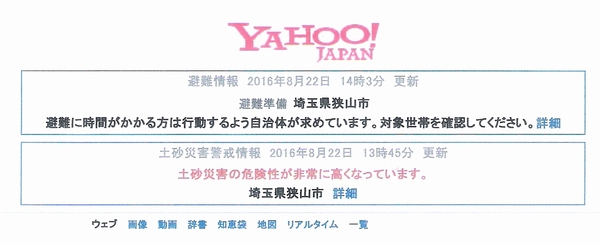 【避難準備情報】や【土砂災害警戒警報】が発令されているようだった。