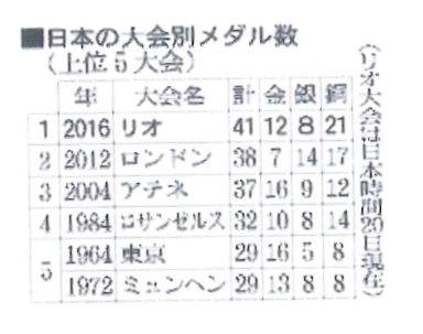 最終的には、金メダル12個、銀メダル8個、銅メダル21個の総計41個のメダルを獲得したが、これは五輪史上最大で、四年後の【東京大会】に向けて大きな弾みをつけたようだ。
