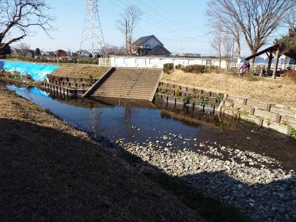 住宅密集地を抜けて不老川土堤に出て、先ずは上流側へ300mほど先にある橋に向かう。