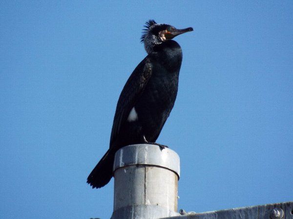 まあまあな枚数をゲットできたので、歩を進めると対岸の電柱上に【カワウ】が居た。この電柱に止まっている姿を見るのは半年振りだろうか・・・