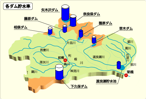 【利根川水系】には主に八つのダムが水源地となっていて、7月14日0時現在の貯水率は