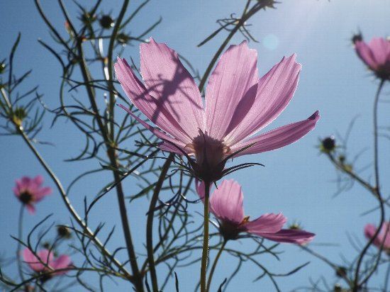 秋桜の花弁はとても薄いので逆光で撮影してもすごく綺麗でR。