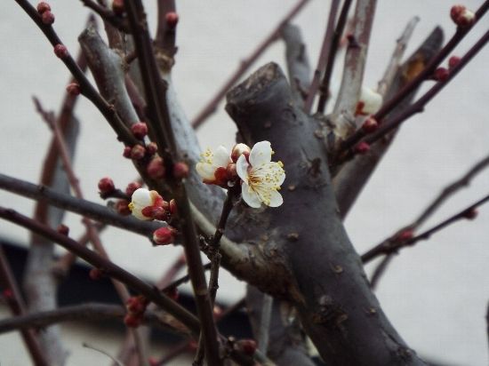 この時季花はほとんど見かけないが、毎年定点観察している【白梅】がようやくほころび始めたようだ。