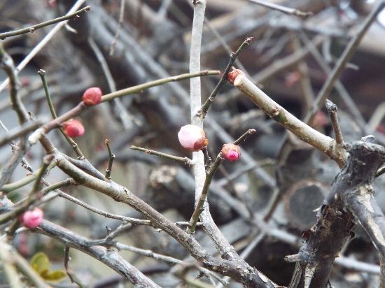 その伝で行くと当地の梅はまだ開花には至っておらず、【ほころんだ】状態だろう。