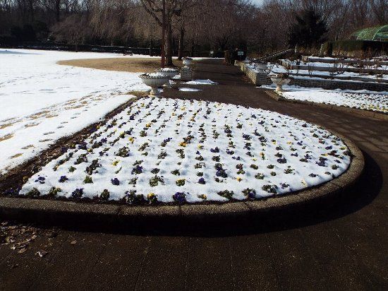【都市緑化植物園の残雪風景】