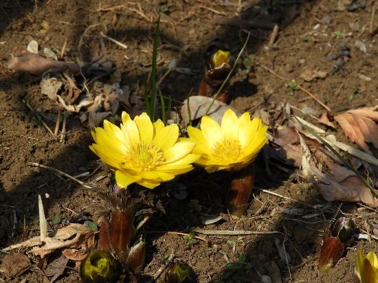 朝食後から【福寿草】狙いの花散歩(デシブラ)に出掛けようと手ぐすねを引いて待ち構えていたので、陽射しが出るや大急ぎで着替えて福寿草の開花ポイントを目指してまっしぐら・・・・・
