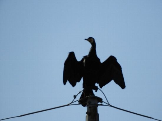 すぐ近くの電柱には【カワウ】も止まっていた。