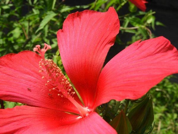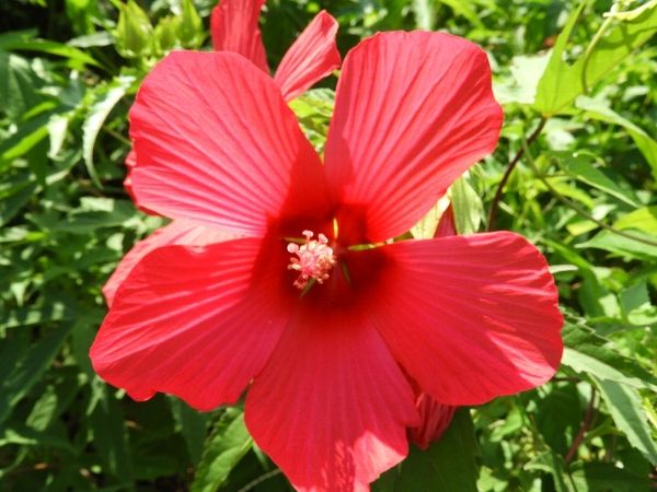 このカサブランカから数十メートル離れた所では早くも【紅葉葵(モミジアオイ)】(葵科)の真っ赤な花が開花していた。