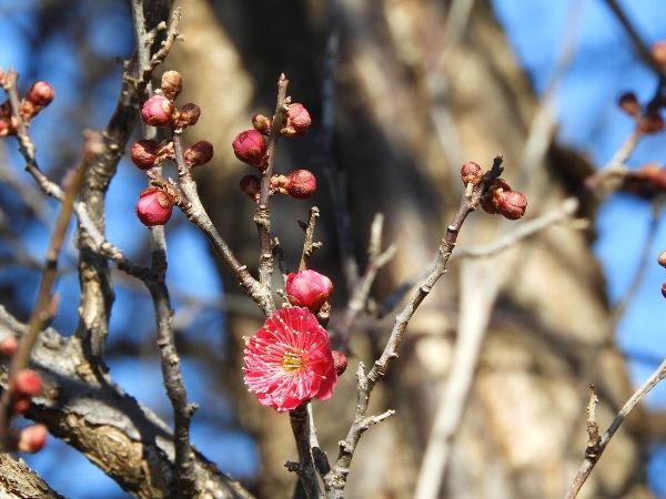 と言ってた割に体感的には寒い日が続いていたように思うが、今日の花散歩(デジブラ)で毎年定点観察している紅梅と白梅(咲いている場所は離れてる)が、それぞれ開花しているのを確認した。