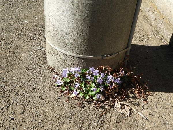 我が家の目の前にある電柱の根元に咲いた【タチツボスミレ】