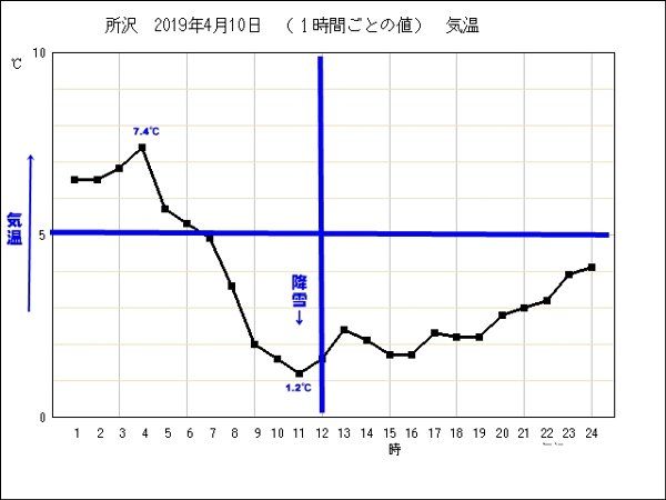昨日(4月10日)の【気温の推移】(埼玉県所沢市)