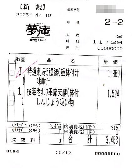 帰宅後にレシートを確認したら、な、なんと・・・・