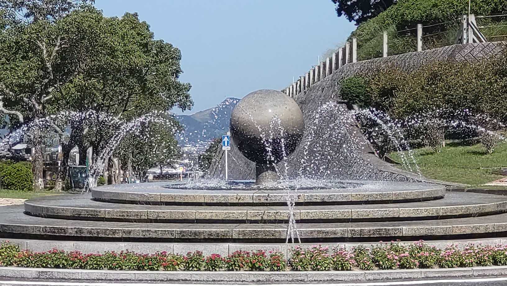 お盆やお彼岸には見る噴水 今日はなぜ? 噴水を見ると心地よいほどの暑さです。