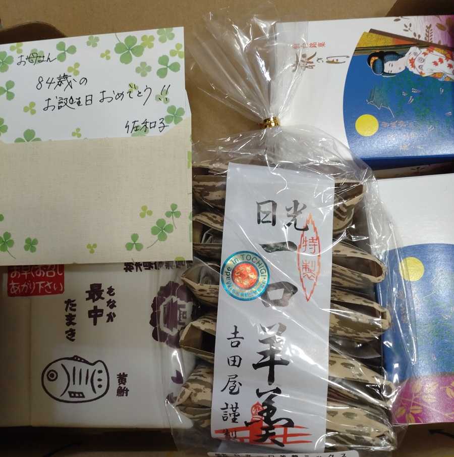 二日続きの、寝不足で 頭回りませんで。家事もはかどりませんが…マッ!いいか!宅配便が届きました。栃木県へ行っていた次女家族からお土産兼お誕生お祝い。カート付き買い物バッグは早々と買ってもらっていますから~~~アラッうれしい!午後から二人揃って、リハビリです。夫は腰痛 朝起きれなかった模様ですが運転はできると…私は左側 腕・肩・膝 トホホでしたが…施術中💤 おかげで頭ボーッ!ハ治りました。帰宅後、お茶タイム 送られてきた「黄ふなっこ」最中頂きました。無病息災縁起物とか…早く寛解しますように、願い込めて~~美味しくいただきました。