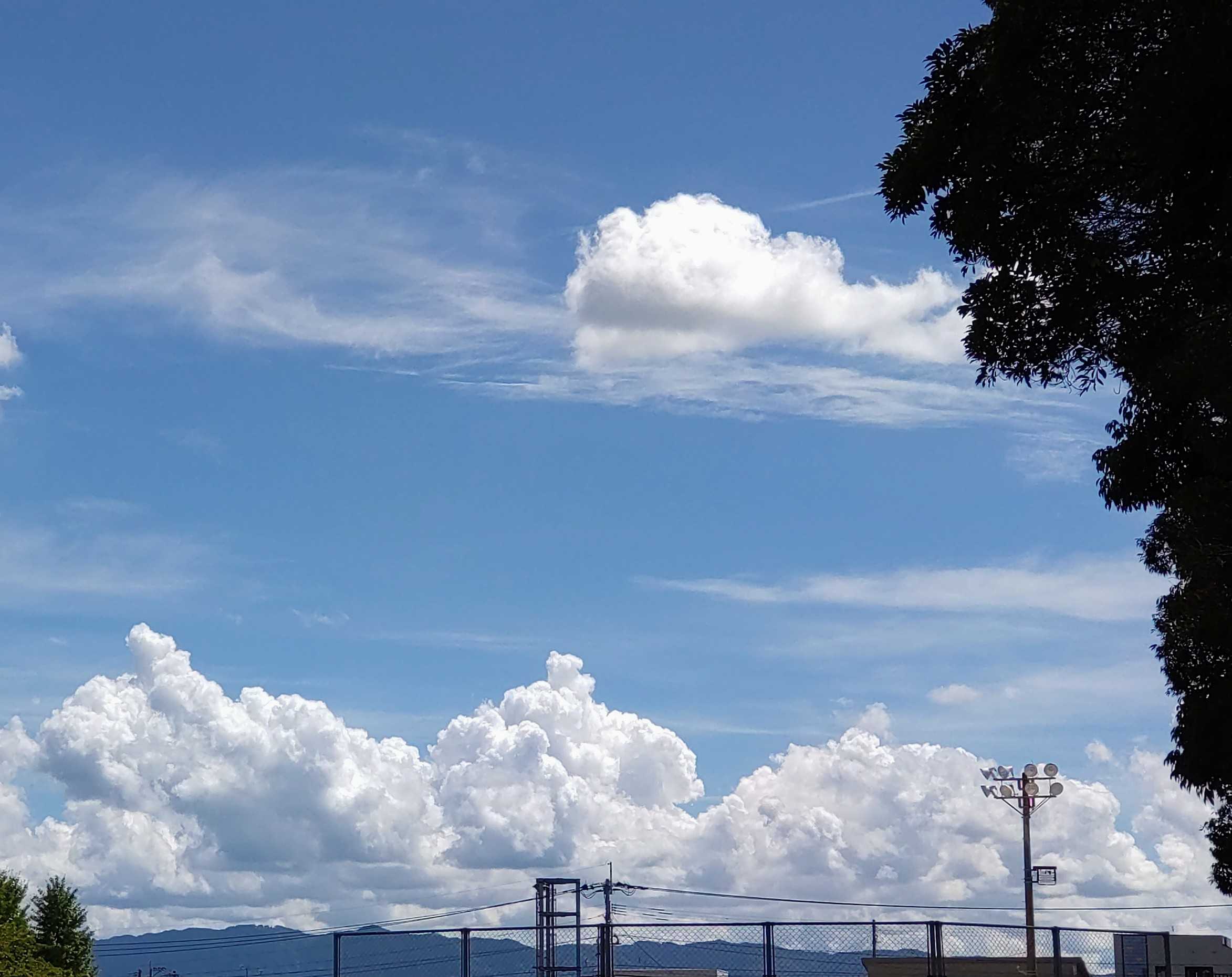 今日は涼しくなるかな❓ 毎朝の思いです。今日午後からは、zoom研修とコーラス練習日です。 お洗濯干したらパソコンで夫へ研修ページをおさらいします。日頃は日ごろは、自分でしないから~~~~~。待機電力で画面黒くなったら、暗証番号入れて… と 教えて車へ ハンドルもって、空見上げたら 綿菓子? かき氷? のような雲 一瞬見とれたら 止まっていた車にぶつかりそう!イカン!イカン!希望の森館について パチリ! “何しょっと?” “あまり雲がきれいだから写真にとってます!”コーラス グループの皆さんお元気です!! お一人89歳 “お誕生日おめでとう!” ♪ ハッピーバースデー 歌いました。 ここに来ますと、わたくし若い方!! 元気もらえます。今日の練習曲♪ 声だし 団歌2曲と ♪健康マーチ♪ 合唱曲 小さな四季 来年2月のハーモニーまで 出来ますでしょうか? 高い音出ません! 夏風邪の後がまだ残っています。休憩をはさんで、秋の歌のはずですが…♪ ないしょ話-♪ 小さい秋見つけた(見つかりません😢)♪ 庭の千草 ♪ 埴生の宿♪ 森のくまさん 元気よく!! 次回は食事会! 楽しみに!帰宅後 「zoom研修 できた?」出来たそうですが、私うっかり音消していましたのに気づかず~~~。昨日、担当者さん家にお見えの時に、私居ない旨伝えていましたので、気がけて下さって電話で教えて、くださったようです。ありがたい!お仲間はじめ、あちこちで助けていただいて生かされています。
