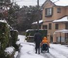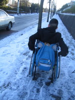朝、起きたらシンジラレナ~イ!! この風景! 天気予報では、「天気の崩れはたいしたことなく、一部で弱い雨か雪が降る」と言ってたけど、ここが「一部」だったとは・・・。」 夕べ、テレビで「日本VSタイ」のサッカーの試合を見て「タイの選手は慣れない雪でかわいそうだ」と思ったけど、他人事ではなかったんだ! でも、外に出てみたら、凍結はしてなくてぐずぐずの雪だったので、車いすは思いのほか進んだのですが、やっぱりギブアップ…。タイヤは何とか進んだものの、なんと、ハンドリムに雪がごっちゃり…。このまま進んだら雪製タイヤ? ハンドリムが使えず、よって今日もおかあが車いす押して登校しました。なかなか通常登校に戻りません・・・。