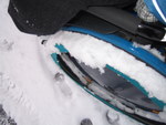 やっぱり! 朝は一面凍結でした!! 道路ももちろんガチガチ。恐くて車も出せません。 心配で、久しぶりに一緒に登校しよう、と言ったら「大丈夫だよー、たぶん。来るなよー」などと、言ってたぶうですが、さすがに途中でギブアップ。それ見たことか。 路地は、雪かきした後も溶けた形で凍ってるので、車輪が定まりません。 まして雪かきして無くて人が通った跡、そのまま固まった道路はもう大変で、ガッツンガッツン氷に車いすの車輪が当たって、砕くように進みます。1分ですっとばして通るところが、今日は10分くらいかかってしまいました。 これが、新雪だったらもっと大変。車いすが雪にもぐりこんで一歩も進めません。今まで、一度だけ、それが理由で学校を休みました。 たかだか4,5cmの積雪でこの始末。雪国の方はどうしてるんでしょう。パンテーラなどのスウェーデン製だったら、雪や路面凍結に強いんでしょうか。 今、11時すぎ、お日様が出てブリリアント!! 目を開けることもできません。ものすごい勢いで雪や氷が溶けています。これなら帰りは大丈夫でしょう(^o^)。