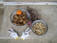 鍬を打ち込んで掘り起こすと、たくさんの花が潜り込んでいて、きれいな実が出来ていました! 大きさもいいですよ。