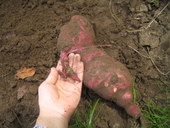 半分はおとうがすでに掘り起こしているので、今日は3株ほど。