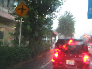 ナビ様におすがりするしかなく、指図通りに行けば、途中何度もエンスト、トラブルの車は見ましたが、水没地区はなくなんとか高速入り口に近づいたのですが、初めての場所、入り口付近の大きな看板「こっちの方向が○○、あっちが△△、そっちは□□」がなんだかよくわからなくて、右と左を間違えて進んでしまったんです。予想外の大きな交差点に出て、思わずブレーキを踏んでしまったワタシ。