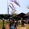 ゴールデンウィーク中、今日だけ主人が休み~(^_^;)で、お出かけすることに♪♪まずは、美術館の屋外で開かれていた、「インフォラータ」(チューリップの花びらを敷き詰めて描かれた絵)を見に今年の絵は、今年の秋の兵庫国体のキャラクター、「はばタン」でしたお天気が良かったので、ダムの眺めも綺麗だった~~そして、芸術の森美術館へ入り、今、開催されている、人形作家・渡辺うめ展「あぜみちの詩(うた)」を見て回りました戦時中の農家の暮らしを、人形やミニチュアで創作してあるんだけど、昔のおもちゃ(めんこやお手玉・将棋)が置いてあったり、中央には昔の居間の実物復元もしてあって、昔のお風呂(五右衛門風呂)や脱穀機も展示してあり、はるも興味深々で見て回っていて、楽しめたようですその後、道の駅の「ふるさと感謝祭」に少し寄って昼食(屋台)を食べ、午後からは「ヨーデルの森」へゴールデンウィーク中とあって、すごい人・・・!!今日は特設ステージで「アルプスの少女ハイジとヨーデルに会おう!」も催されていて、最後には一緒に写真も撮れて、はるも嬉しそうそれから上のほうに上がって、はるは「芝滑り」をやりたがったけど、すごい行列なので却下~~動物ふれあいコーナーに行って、はるはロバに草をあげて喜んでいました(笑)。↓↓はる、草を取ってきてはうさぎやロバにあげて、なかなか移動しようとしなくって、パパとベビーカーのしゅんは、待ちくたびれてしまったようですでもはるが、「川で水遊びがしたい~~!!」と言い張るので、することに・・・。はるは、丸裸になって川で水遊びしてました(苦笑)。まだ5月なのに~~↓↓しゅんは、足だけ水に浸かって、そのまま動けずに立ち尽くしていました(笑)。まだ水が冷たかったかな!?もう疲れたので帰ろうとしたら。はるが「ぼく、電車(チューチュートレイン)に乗ってない~~っ!!」と大泣きしだした・・・(汗)。無理やり帰ろうとしたけど、大泣きだったので、パパとはるとで、電車に乗ってきて、17時前、ようやく帰路につきました(^_^;)帰宅後、みんなで昼寝しちゃったよ・・・(はるだけ、朝まで寝てました^^;)