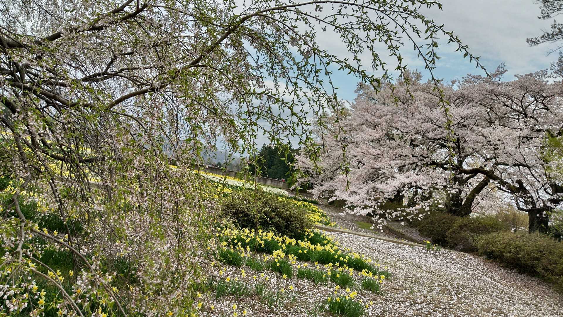 境内は桜の木がたくさんあり、とても綺麗でした。見事な桜です😊 水仙も綺麗でした。