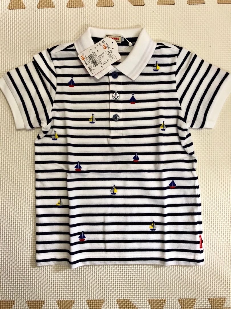 キヌヤさんでまたマリンポロシャツ入荷してます 【ネコポス便発送可能】SALE【40%OFF】MIKI HOUSE(ミキハウス) マリン風ボーダー半袖ポロシャツ<100・110>☆日本製☆★閉店セール★ みなさん購入してるのうらやましくて、でもいつも売り切れで思わず再入荷してるの見つけて、買ってしまいました!! あー、サマーパックも買ったのに また我慢でかなかったよ