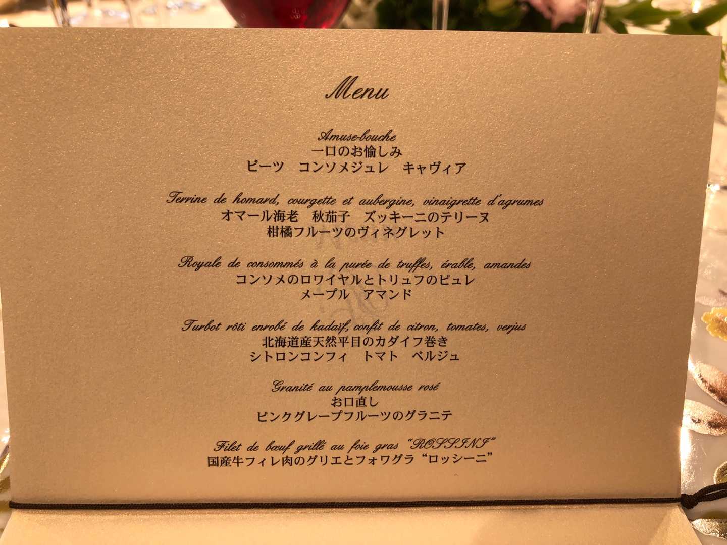 ちなみに今回のメニューは披露宴にあわせた特別メニューらしいです。