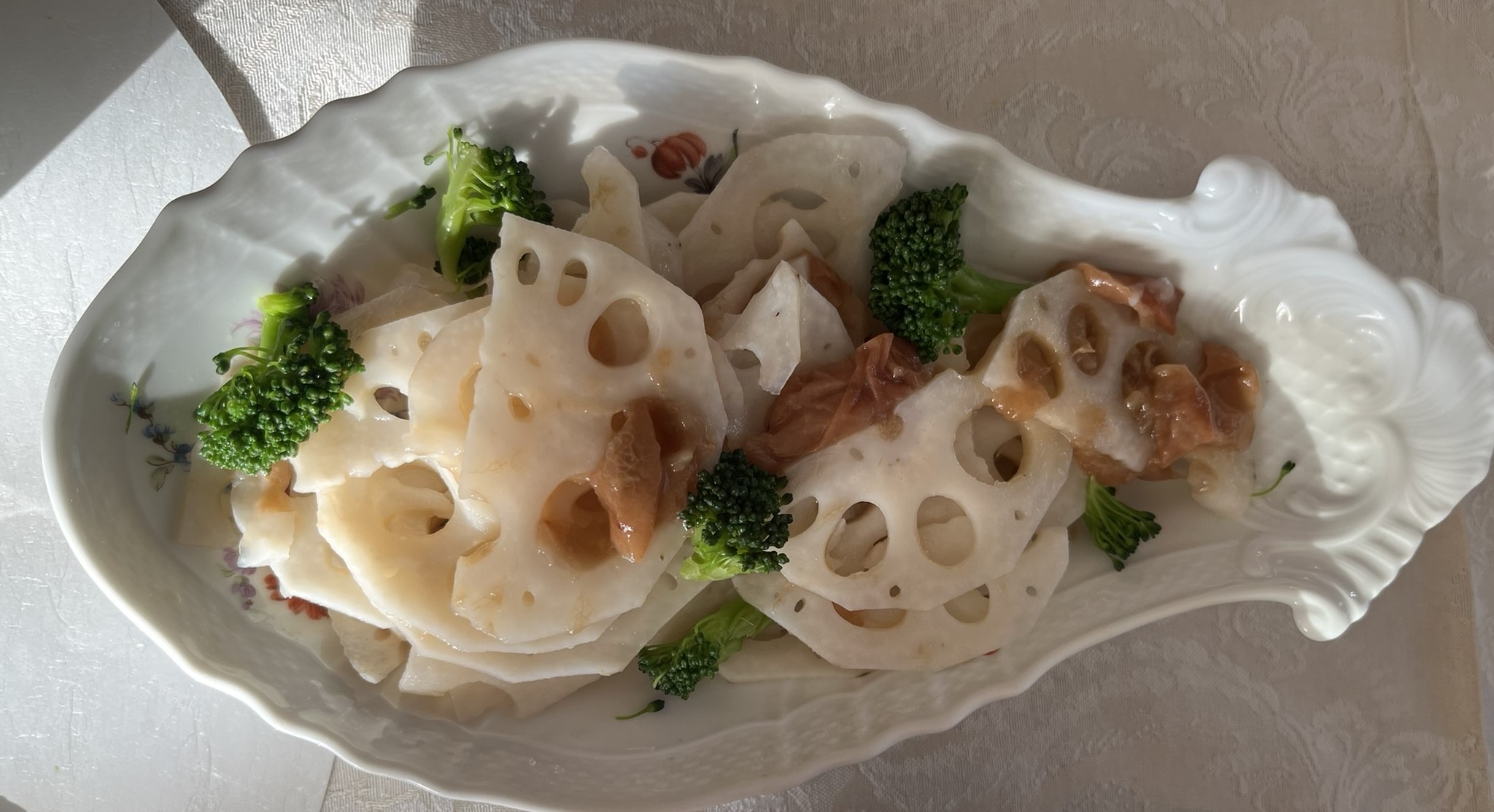 持って行ったれんこんの梅あえもアドバイスでブロッコリーを添えてみました。