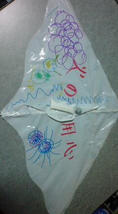 お昼過ぎのことです。近所の班長さんをしてるおばちゃんが回覧板を持って来てくれたのですが、りくさんが昼寝中という事で小声で話してくれていたんですそこへがかかって来て、呼び出し音が鳴り出したのですが、普通にプルルルル・・・などの一般的な呼び出し音じゃなくて音楽だったので、おばちゃんは気付く気配もなく・・・。私は何度か家の中を気にする素振りを見せたのですが、おばちゃんは一向に喋りをやめてくれず・・・。あまりに普通に喋り続けるので、私も中断することもできず、もうに出るのも諦めて、またおばちゃんと話し始めましたすると呼び出し音が止まったので、切れたな・・・と思っていたのですが、部屋を覗くと、何と昼寝していたりくさんが起きて受話器を取ってくれていたんですしかも何か喋ってるし私はそれを見て、「あっ!!」と声をあげてしまったので、さすがのおばちゃんも「あれ?起こした?」と言って、悪そうにそぉっと帰って行きました慌てて受話器をもらうと、もう通話は切れていた(もともと繋がっていたかどうかは不明)のですが、「おばちゃん出たで!」とりくさん。今日はパパに買ってあげた任天堂 Wii Fit ウィーフィット Nintendo 【バランスWiiボード同梱】が届くかもしれなかったので、そのだったかもなぁ・・・と思っていたら、その数分後に配達業者のお姉さんが来てくれましたそれで「もしかして今くれました?」と聞くと、「あっ!小さな子供さんが出てくれていろいろ喋ってくれたんやけど、私やったし、よく聞こえやんかって・・・。でもママが居てるのわかったから来させてもらいました。」って思わぬところでりくさんお手柄ですもし、りくさんがを取ってくれてなかったら、配達業者の人には『留守』だと思われ、配達が明日になっていたかもしれません。到着をまだかまだかと待ち望んでいたパパにこの事を話すと、いつもより早めに帰って来て、りくさんを褒めてましたで、お風呂とご飯をさっさと済ませて、子供達が寝てから遊ぼうというところでしたが、肝心のパパがおこたで寝てしまって、りくさんはまだまだオモチャを散らかしてギンギンです早く寝てくれ~ さて、先週、はるさんの保育所では防火凧揚げがあったようですが、その時に遊んだ凧を今日は持って帰ってきました去年の凧と比べてみましたどちらも自分で好きな絵を描いたようで、去年も今年も「ポケモン」の絵だそうです上が去年ので、下が今年の作品ですが、こうして見ると、随分うまく描けるようになってます