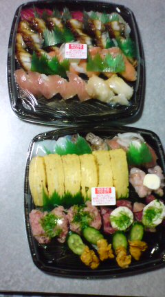 今日はパパがおとといの分の代休を取るつもりが、午前中だけ仕事が入ったとのこと予定ではジムニーのオイル交換に行きたいから、朝、はるさんを保育所へ送ってからオイル交換に行き、晩ご飯用にお寿司を買って、保育所のお迎え時間に合わせて帰って来てくれるはずだったのですが・・・。仕方なく、昼過ぎから休んでオイル交換へ行き、お寿司も買って来てくれることになりました保育所の送迎は私がしなきゃいけなくなったのですが、晩ご飯の準備が楽チンですちょうど今朝から頭痛がしていて、まだすっきりしないので助かります多分この寒さでの肩こりが原因での頭痛だと思います。いつもならこんな日はパパは深夜まで遊んでくることが多いのですが、今日は珍しく晩ご飯に間に合うように帰宅してくれたので、子供達も大喜び美味しかったですぅ~
