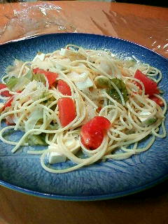 暑いし、パスタがあるからって事で冷製パスタ作ってみました。