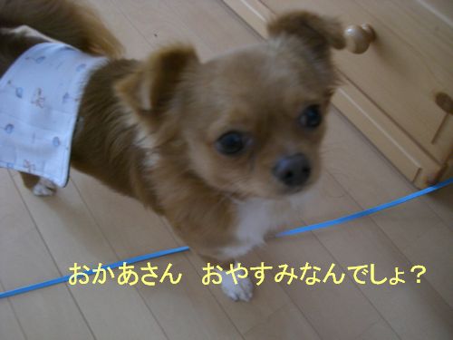 こんにちは昨日は夜勤明けで、夕方から看護学校時代の友達の結婚式の2次会に大阪まで行ってたので、ブログUPできませんでしたごめんなさい更新してないのに訪問、応援してくださった方、有難うございますうれしかったですよ~久しぶりに会った友達と大盛り上がりで、楽しい1日でしたもちろん、花嫁さんは綺麗で幸せそうでしたよ~久しぶりに、ワンピース着て網のタイツ?パンスト?履いたら・・・家の3チワ息子達が、足元に群がり!?「ギャ~」もうちょっとで、破かれそうになりましたさて、今日はめいちゃんをサークルから出して、ハルトとふ~ちゃんに対面させた時の写真ですめいちゃんとの触れ合いを楽しみにしていた、ハルトとふ~ちゃんそうなんですよ~お耳が立ってるのよん普通当たり前の事なのに嬉しいわたし・・・ワンコって、お尻の匂い嗅ぐの好きですよね~人間じゃ考えられないわ~可愛いお顔でしょ?ちょっと、目が離れてるけどね・・・ふ~ちゃんは甘えん坊だから、お母さんが取られると思ってか!?めいちゃんに焼きもちやいてるんですよホントは優しい子だから、仲良くしてねめいちゃん、なかなか勇ましいお言葉大阪出身だから、関西弁喋りますふ~ちゃんと・・・ふ~ちゃんは、身体が白っぽいのとお目目が真っ黒で可愛いから女の子の間違われるんだよ~ふ~ちゃん、お兄ちゃんになったんだからめいちゃんに優しくしてあげなくちゃダメだよ~あの・・・めいちゃんなんですけど・・・意外とやんちゃ坊主なんですよ夜中や明け方にクンクン泣いてるの、淋しくて泣いてるのかと思ってたんですが・・・どうやら、サークルから出て遊びたいようなのです今日で家に来て5日目ですが、もう部屋の中走り回って、ふ~ちゃんやハルトにまで飛び掛って行ってます怪我しないか、ヒヤヒヤ同じチワワでもめいちゃんはまだ小さいですからね。最後に、3兄弟になった記念にこんな写真撮りました後ろに写ってる布団は見ないでね~チワワブログランキング参加中ですポチッと応援して下さったら、とっても嬉しいですクリックして下さいね!!