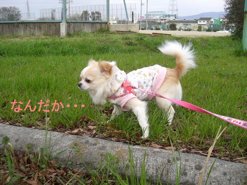 今日は、お休みの日です風邪もようやく治りました昨日、寝るのが遅かったのでゆっくり朝寝坊したかったのですが、ハルトさんが朝から起きろ起きろとうるさいので、8時過ぎには起きました そのとおり、お休みですよ~ おでかけね~近所の公園にでも行きますか? 家から歩いて5分の所にある公園に行くことにしました近いですが、ふ~ちゃんはバギーに乗せて行く事に・・・このバギー、買うときは家族から散々反対されましたが、便利ですよ~買って良かった・・・ ふ~ちゃんも嬉しそうですハルトは自分で歩いてます公園横には、野球場とテニスコートがありますせっかくだし、ふ~ちゃんを歩かせてみようっと・・・ わたしの足にくっついてきて困っちゃいます なんで、テンション下がってるのよ~テニスコートでは、シルバーの方たちが軽快にテニスされてますいいな~わたしも早く定年退職して、こういう暮らししてみたいわ~テニスしてるんだよ~ふ~ちゃん、ハルトが呼んでますよ~ 2匹リードで連れて歩くのって意外と大変です。そうこうしてるうちに・・・公園に到着~ だ~れもいません・・・公園での様子は、明日です。明日も見て下さいね今日もハルトふくのブログに訪問して下さってありがとうございますチワワブログランキング参加中です応援よろしくお願いします。ちょっと下降してますが・・・ ↑↑↑↑クリックしてね