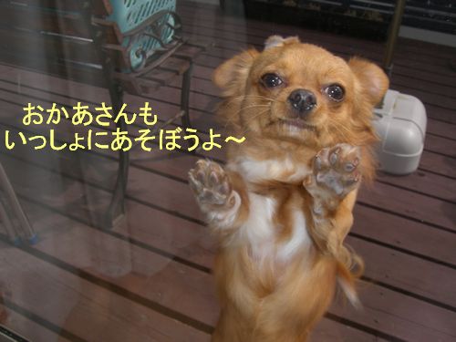 こんばんわ日付が変わったので、今日は早々と更新しときます昨日は、昼前からいい天気になりましたね。めいちゃんは、チッコにベランダに出た、ハルトとふ~ちゃんの真似してベランダに出ようと頑張ってましたよめいちゃん、4人兄弟で育ったせいか、やんちゃだし・・・何でも、物怖じせづ・・・ハルトなんか、サークルから出てくるのだって、凄く時間かかったのにな~ふ~ちゃんも、最近までダッコでベランダ出てたのにねやっぱり、まだ赤ちゃんだし、お外は怖いかな?こっちへ、走ってきましたよ~ぬいぐるみが走ってるみたいで可愛いわ~はしたない格好でごめんなさい今日も3チワ兄弟は元気でしたチワワブログランキング参加中です応援してくれたら、お母ちゃん喜ぶし・・・頼んます!!(めいちゃん)クリックしてやぁ~(めいちゃんより)