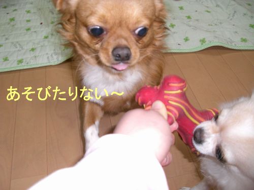 こんばんわ昨日は結局、ず~っと家でゴロゴロしてて・・・ブログアップしてから20時過ぎまで寝てましたハルトとふ~ちゃんは、屋上で遊んだのにも関わらず、遊び足りないようです オモチャを持ってきて遊べ遊べ!!ってアピールします部屋の中で、またまたオモチャを投げて・・・取ってくる・・・の、お遊びです凄い勢いで走ってるので、階下ではうるさいだろうな~ 最近、ふ~ちゃんも強くなったのか!?オモチャの取り合いしています ハルトって面白い表情するな~あの~今日は何処にも行かず、ハルトとふ~ちゃんと一緒に遊んだから今から、お風呂やさんに行って来てもいいですか? このとき、既に23時過ぎ・・・けど、この位に行ったら空いてるんですよ~ いくら近所だからってワンコは連れて行けませんよ~ はぁ~い結局、1時間ちょっとで帰ってきましたよお風呂上りのソフトクリーム美味しかった太ると分かってても、我慢できなかった~チワワブログランキング参加中です応援、本当にありがとうございますハルトとふ~ちゃんも喜んでいます!!!クリックお願いします