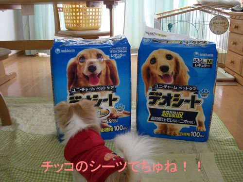 こんにちは今日もいい天気ですね~さて・・・3チワワになってから、ペットシーツの減りが早い・・・この間、車で20分くらいの所に新しいホームセンター(カインズホーム)が出来て、開店セールでお買い物したペットシーツ980円だったので、2袋買いました同じ商品を買ったのだけれど・・・微妙にデザインが違います今日、夜勤帰りにコーナン行って見ると1480円してましたこんなことなら、もう1袋買っとけば良かったかも・・・春は、色々と物入り!?なんですよハルトのワクチンや3チワワ分のフィラリアのお薬など・・・去年は、ほとんど散歩に出かけなかったので使ってなかったけど、今年は散歩にもちょくちょく行きたいので、これを購入~フロントライン・プラス実家の柴犬には毎年使ってるのですが、病院で買うと、これって結構高いですよねけれど、楽天でペット用品部門のランキングNO1になっているのを見つけて、安く買えました(病院でしか買えないと今まで思ってました)さっそく、使ってみましたよ~これで、ダニやノミから大切な息子達を守るのです今日は、みなさんのブログ訪問・応援は夜にしますね今から、お風呂入って寝ま~すチワワブログランキング参加中です応援どうぞよろしくお願いします~クリックして頂けると・・・うれしいでちゅよフロントラインはここで買いましたよ~本間アニマルメディカルサプライ
