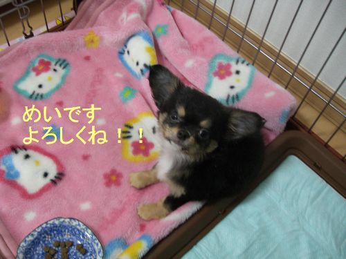 こんばんわ更新時間がバラバラな今日この頃・・・今日もハルトふくのブログを見てくださり有難うございますさて、3匹目チワワちゃんの名前が決定しましたので、お知らせします名前は・・・めいちゃんです芽生ちゃんと書きます。家のチワワちゃんは、本名は!?みんな漢字の名前なんですよハルトは晴大ふ~ちゃんは、福来(ふく)と書きます今日も、ハルトはめいちゃんのサークルの前でめいちゃんのことを見守っているようですいちおう、ふ~ちゃんもサークルの前で見てますが、すぐにわたしの所へ来ちゃいますハルトは、伏せして、じ~っと見てます可愛い奴ですハルトは、めいちゃんの事、可愛い弟だと思ってるみたいです初日は、吠えまくってたふ~ちゃん・・・早く仲良くなってほしいな~ふ~ちゃんの言い分でしたあっ、めいちゃんフードしっかり食べるようになってきましたホッと一安心今夜は夜鳴きしませんように・・・チワワブログランキング参加中ですみなさんの応援あって、17位ですありがとうございます今日もポチッとあなたの愛の手を・・・