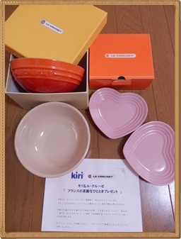 今日はお届けメールが来てた分が届きましたキリ&ルクルーゼのキャンペーンでルクルーゼのマルチボウル&ハートプレート 各2枚とってもかわいくて嬉しいです あとは画像ナシですが、普通郵便で焼き肉屋さんのお食事券1000円分焼き肉屋さんで母の日企画で絵を描いてくださいって頼まれて、息子が絵を描いてくれたので そのお礼みたいです。全プレみたいなもんかな?よくわかりませんが… 明日で5月も終わりですね~明日も1つくらい何か届くといいなw またお届けものがありますように 全然関係ないけど、先日お弁当の話がでたので撮ってみた昨日の息子のお弁当↓キャラ弁作れないので、いつもこんなもん><毎回おかずの内容とおにぎりの飾りが変わるくらいで、見た目的には同じような感じになってしまう… ↑いつもはミニおにぎり4個詰め込んでたけど、←おにぎりの形が変わるしwちょっと考え直して、ゆとりを持たせるために3個にしてみたwそれでもギュウギュウしかも赤いの緑なものが苦手な息子なので彩りも悪いですでも1つだけでも頑張るようにと緑系はちょこっと入れるようにしてそのご褒美としてプチゼリーをinするようにしています(*≧m≦*)ププッ 最近暑いからか、珍しく息子の食欲が落ちてるんだよね~↑おにぎり減らしてたけど、1個おにぎり残してきたの蓄えあるからそこまで心配してないけどwでも水分ばかり摂ってるみたいだから早々に夏バテしそうな… お弁当 週2回なのにマンネリ化してるからもう少し勉強して、工夫しなきゃなぁ… とか言いながら、明日のお弁当はまた似たようなの作りますがw唐揚げ仕込んでそろそろ寝よ~っと