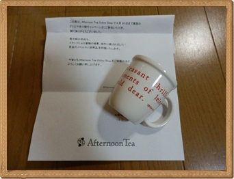本日1回目。なんだか大型の台風が近づいているようですね><昨夜はすごい雷雨でしたが、息子が今までになく落ち着いてたので「雷怖くないの?」って聞いたら「うん。だって4歳になったから、雷なんて怖くないもーん」だって4歳になったから…と言っても4月には4歳になってたし、1学期は怖い><って抱きついてたよね?? そして「雷は怖くなくて、光るのが面白いんだよ」って言って窓からずーっと稲光を見てるの。「ほら、お昼みたいに明るくなるよ~」って。へーと思って一緒に窓から見てたらパパが帰ってきてそんな窓の近くで見てたら危ないよ!と怒られました>< その時にパパが持って帰ってきたのがこちら↓最近クロネコさんは自宅にピンポンしてくれないのですぐに私が受け取れず困る><佐川さんだけだよ「奥さん、奥さん」って私の荷物だけはちゃんとピンポンしてくれるのは…アフタヌーンティのオンラインショッピングのサイトでツイッターで川柳呟いたら佳作をいただきまして佳作の人たちの商品はノベルティということだったので楽しみにしていたらミニカップ?でした小さくて可愛いので息子が「これ、はる○サイズだね~」とよろこんでました。が、私が使います(*≧m≦*)ププッ もっといい賞はつぶやいた商品そのままもらえるみたいでマッサージチェアもらってる方がいて、うらやましかった~~文才ないので私には無理だけど>< またお届けものがありますように